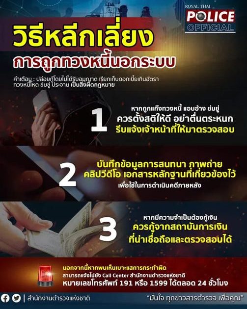 1.หากถูกแก๊งทวงหนี้ แอบอ้าง ขมขู่ ควรตั้งสติให้ดี อย่าตื่นตระหนก รีบแจ้งเจ้าหน้าที่ให้มาตรวจสอบ